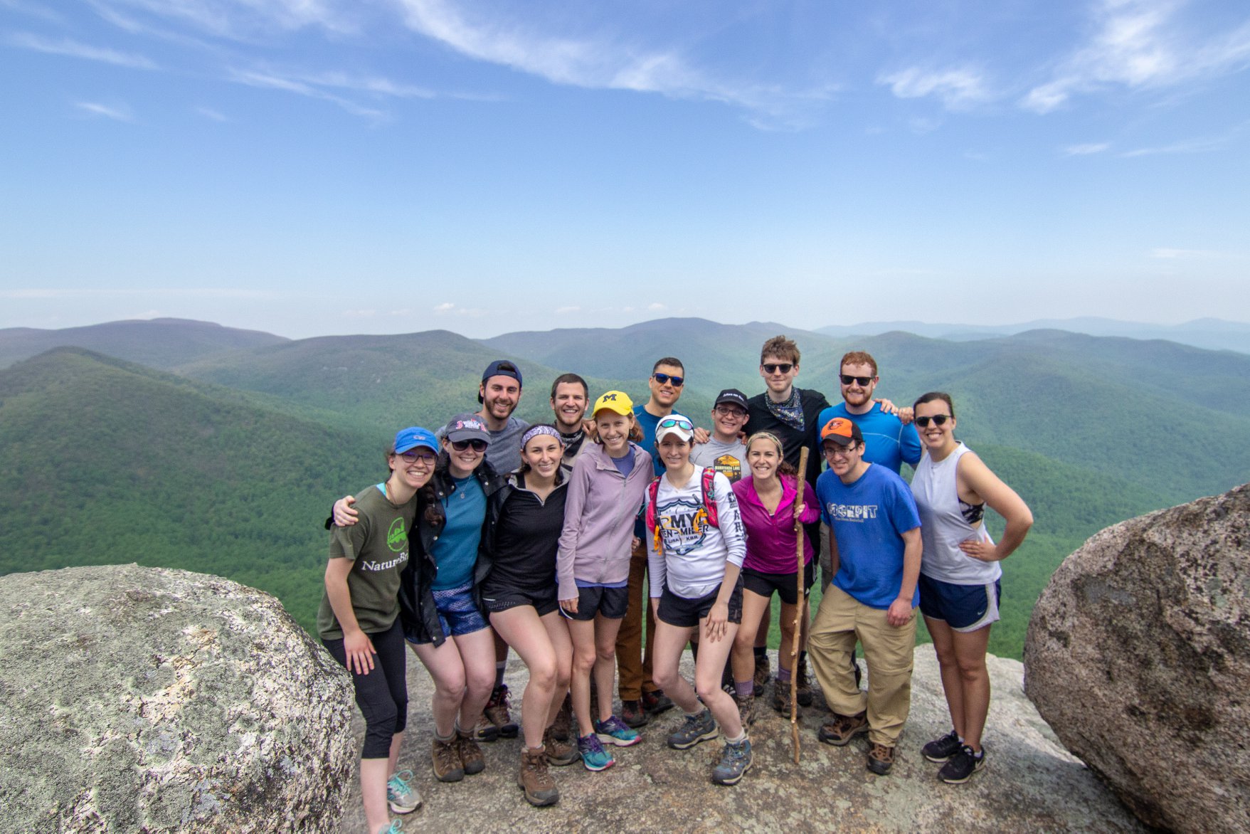 14 really good-looking Jews on the summit of Old Rag, arguably the most strenuous and rewarding day hike in the DC area. After thousands of feet of elevation gain and some rock scrambles, our PB&J tortilla lunch could not have tasted better.