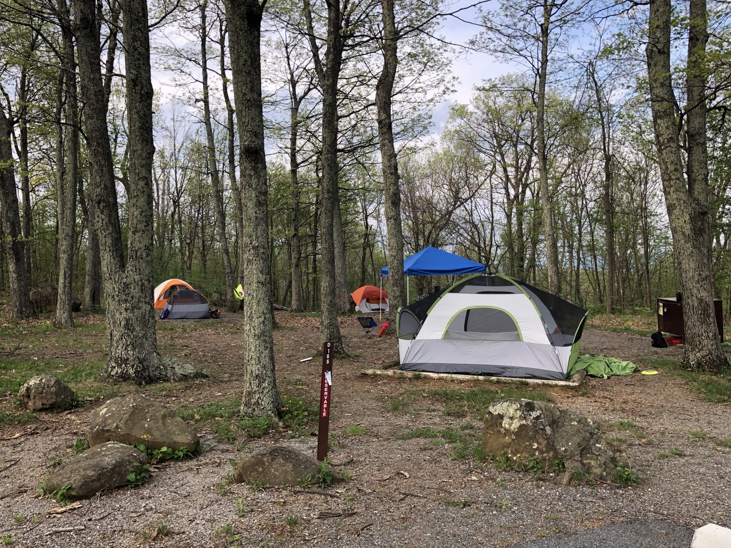 Group Campsite D166 at Mathews Arm Campground treated us well. It was large enough to allow our 6 tents (and 1 hammock) to be spaced out. Some of us felt so good about the weather Saturday night that we took our rainflies off. That allowed me to see a shooting star from my sleeping bag. Of course the tradeoff was having to scurry out of the tent at 4am to get the rainfly back on before we got poured on for several hours!