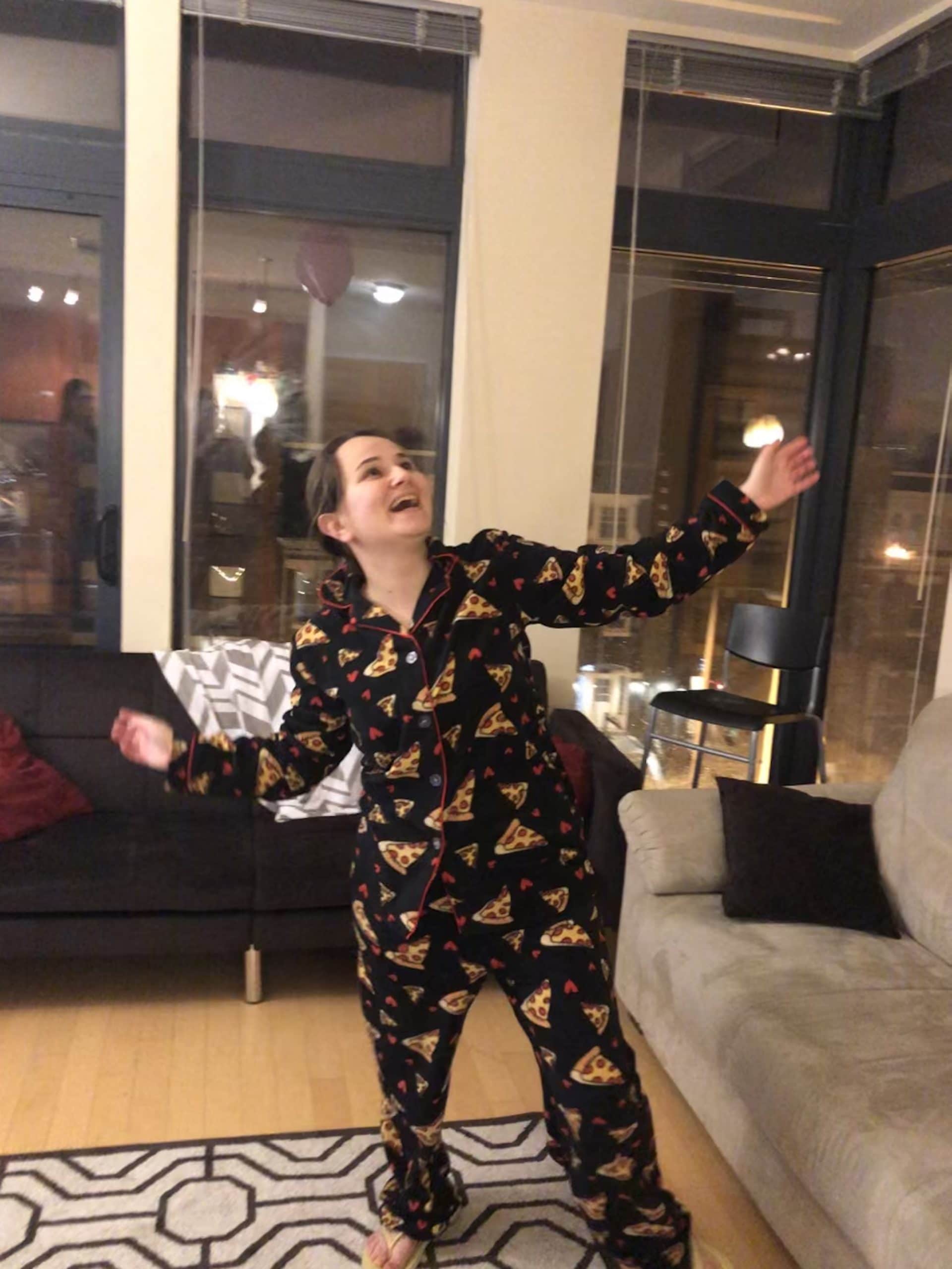 Elyssa: It was actually a few weeks ago, but I planned a baked ziti pajama party. My favorite food is baked ziti and my favorite clothing is pajamas. I’m not a big drinker, so I figured let’s just have this big dinner party where people can come eat.