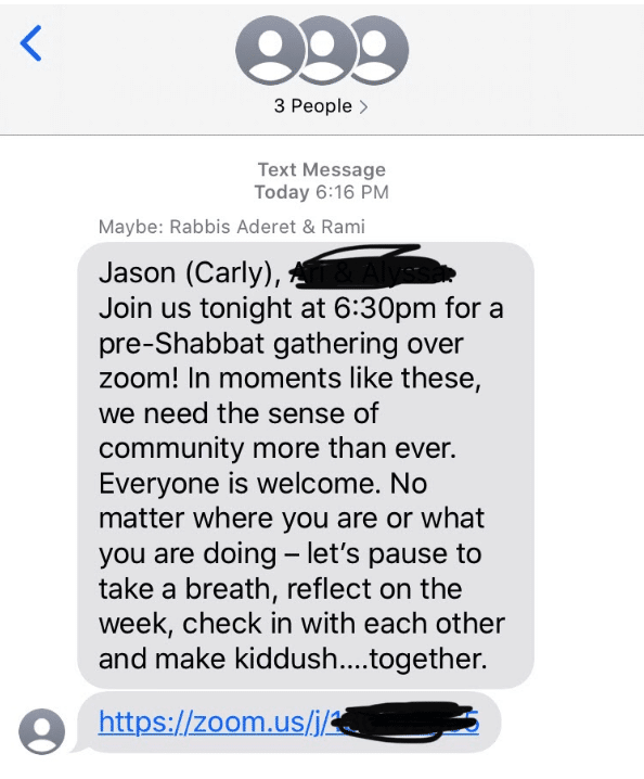 While on FaceTime, I received a text from Rabbi Aderet Drucker from The Den Collective in Bethesda. The text said: