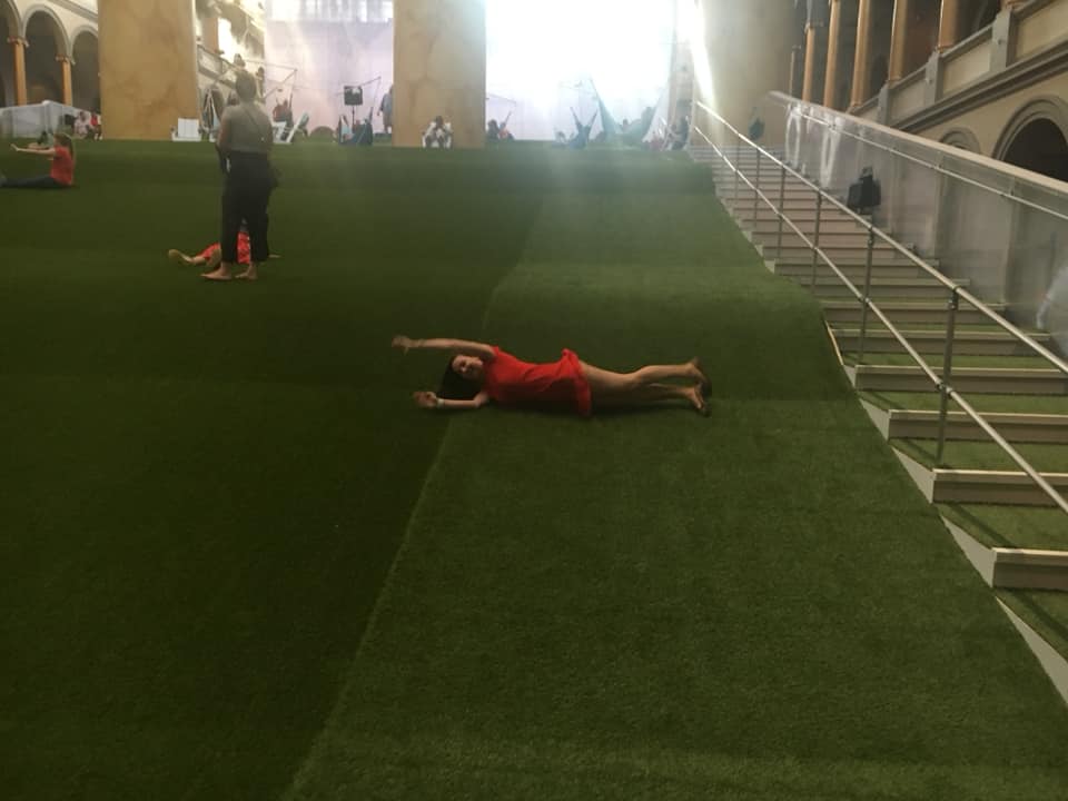 Green AstroTurf was vaulted on top of scaffolding to look like a giant hill. There were large hammocks, and a soundtrack played the buzz of mosquitos. The museum even hosted “outdoor” movie nights.